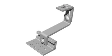 Vormontierter Dachhaken mit patentiertem Clip zur direkten Profilanbindung mittels Hammerkopfschraube.